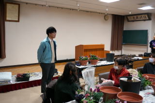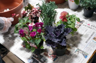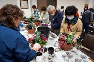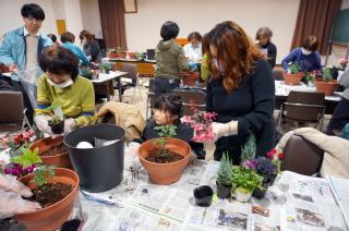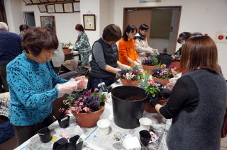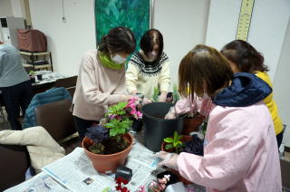 今年最後の行事である花と緑の出前講座で寄せ植えを行いました。