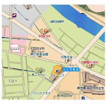 富山県側から(高速道路)西インターで降りて金沢方面野田専光寺線へ