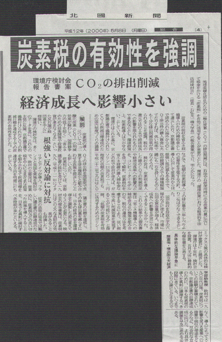 - イギリス:すでに15%削減。2010年の削減目標を22%に強化する方針。エネルギーの使用に「気候変動税」、車にも排出量に応じて課税する。