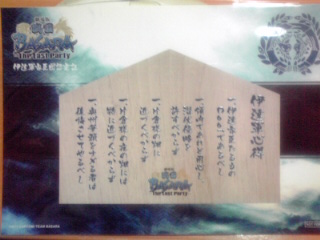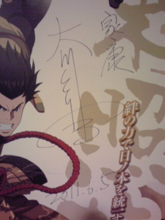 サンシャイン60展望台で展示されていたサインは写真撮影禁止だったので、ここのサインはめっちゃ撮りました(笑)。 これは携帯で撮ったので画質イマイチですが、デジカメの高画質でもガンガン撮らせていただきました(笑)。 映画館に置かれていたパネルは家康と三成の2点だったんですが、 もし政宗さまと真田のパネルも置かれていたら、中井さんや保志さんのサインも見られたのかしらねぇ。 |