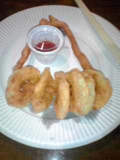 第一期8話「血風大伽藍! 小十郎絶体絶命」より 『六爪流海老揚げ餃子』 招福門(池袋餃子スタジアム) 680円 サクッとした食感が自慢の海老揚げ餃子で、伊達政宗の6本の刀を表現。 三日月型のマヨネーズをつけて食べれば絶品です。 前回の銀魂の時に食べた海老揚げ餃子がなかなか美味しかったので、今回もちょっと楽しみにしてました。 外側パリパリで海老の風味が良くて美味しかったです。ペロッといけちゃいましたね。 でも、容器が大きすぎて中身がショボく見えちゃうのがちょっと残念かな。 |