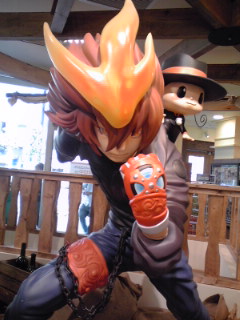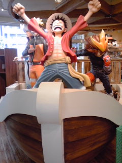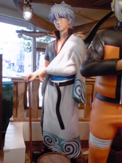 ルフィ、ナルト、銀さん、ツナ&リボーンの大きなフィギュアがジャンプショップ入口にドーンと置かれていましたよ。 あれ、なんか足りない?と思ったんですが、BLEACHの一護がいませんねぇ。 |