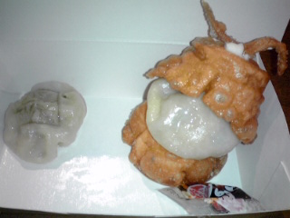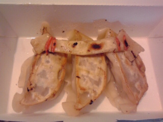 「揚げ餃子」と称してますが、兜部分と胴体部分は皮を揚げただけのもので中身なしです。皮だけなので全く美味しくありませんでした。顔部分とほとんど読めない焼き印(笑)が押されていた焼き餃子はちゃんと中身が入っていて美味しかったんですけどね。 私は餃子を食べに来たのであって、餃子の皮を食べに来たのではありません。ホント、形ばっかりで味は二の次三の次な餃子はちょっとどうよと思ってしまいましたね。 しかも作るのに結構時間が掛かってましたし。その手間の割にぜんぜん美味しくないなんて、超残念でなりません。今回のコラボフードの中で残念賞をあげたいメニューの一つです(−−;)。 |