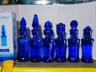 | Hello, People! 今話題騒然の『ポーション』を買ってしまいました(^^;)。なんかもう売り切れ店続出で結構な人気らしいですね。FF知らない人でもボトルデザインを気に入って買う人もいるらしいですし。 ボトル部分はちゃんとガラスで出来ているのですが、肝心の飾り栓はプラスチック製です。けれどもズッシリとした重量感があり、安っぽい感じは全然しません。青い色がとってもキレイでついつい全6種類集めたくなってしまいます、つーか集めてしまいました。スクエニ、本当に商売が上手いなあ(笑)。 味は普通のドリンク剤みたいな感じで、人によっては好き嫌いがはっきりと分かれそうな感じ。商品の紹介で『数種類のハーブをブレンドしてポーションの神秘性を表現しました』みたいな事が書かれていたのですが、美味しさではなく神秘性を追求するだなんて徹底してますねえ(笑)。まあ、私的には嫌いな味ではありませんでしたが。 |