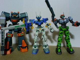 私の駆るVRをよくボコッて下さったお三方(笑)。左からライデン、テムジン、アファームドです。オラタンでもっぱらエンジェランを使うようになってからも、このお三方の後継機にそれはもうボッコボコにやられた思い出深いVRです。 エンジェラン使用の時もバルバドス使用の時もそうだったんですが、私は敵の真正面に立つとつい安直にストレートなビーム攻撃を仕掛けてしまうんです。何度ライデンのビームに返り討ちにされたかわかりません。ライデン相手にゲームスタート時にビームの打ち合いになり、秒殺された事も数しれず…。今思えばなんて無謀な事をしていたのかしらと思ってしまいます。そして、よく動きを読まれて進行方向にビームを置かれましたねえ。根が素直なのか(単純なだけですよ)、相手の思うままに自らビームに突っ込んで行った事幾多…。 対テムジン、対アファームドの時は近付かれると負けてしまうので、もう遠距離攻撃を連発して逃げ回ってましたね。でもすぐに追い着かれて、特にアファームドには何度背後から叩き切られたかわかりません。一度逃げ回ると見せかけて、果敢にもアファームドにエンジェランで接近戦を仕掛けた事があります。その時は相手の意表を超ついたらしくって、一撃を食らわす事が出来たのですが、成功したのは後にも先にもその一回だけだったような気が…。その後はエンジェランのミラーをぶつけて転ばせて、転んだ上にまたミラーを置いたり、当たり判定の長い近距離攻撃を置いたりと言うちょっと姑息な戦法(起き上がると同時に技に当たってしまい、また転ぶんです)ばかり取ってました(笑)。でも、そんな姑息な技もすぐに見切られてしまい、何度ミラーの下を潜り抜けられたか…(笑)。 他のVRはあまり思い入れがないので割愛しちゃいます(^^;)。 |