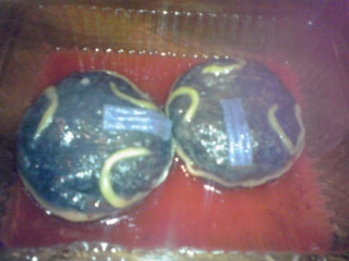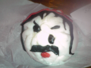 | ←沖田くんの肉まんは可愛いかんじですけど、この↑カツオの肉まんは目の部分がずれちゃっている所為でもう何が何やらわかんない状態になってますヨ(笑)。 | |
