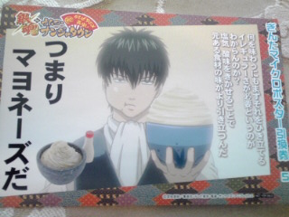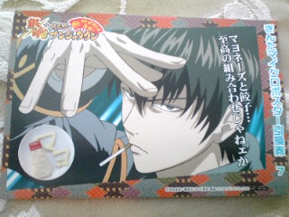 ↓マヨ丼に付いてきた土方さんのマイクロポスター。 ポストカードサイズのこのシールが何故「ポスター」と称されるんでしょうかねえ? |