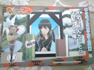 『完全に死んだことになってるよ俺!!』 焼きたてのクレープの上に、山崎の葬式シーンを再現しました。ミントンはチョコ、遺影はチーズケーキで出来ています。』 ![]() |