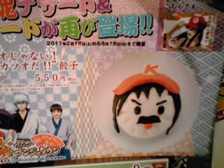 『マ○オじゃない、カツオだ!!餃子』 近江牛を使った肉まん形餃子で、カツオに変装した桂を表現したメニュー。髪はイカスミ味、帽子はピザソース味です。 ![]() |