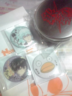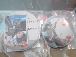 一等の景品は「銀魂特大キャラクターズ缶バッチ直径250ミリ」でした。絵柄は土方さんメインのものをチョイス。 ![]() 光って見難いですけど土方さんかっこいい(●^o^●)! |