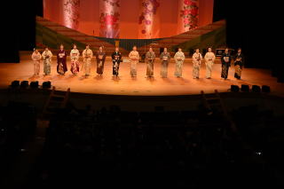北都民謡会は本10月5日(日)は金沢市文化ホールで「第62回北都民謡会大発表会」を開催いたしました。11開演、15時、4時間間の民謡絵巻でした。 プログラムはこれまでの本会の歩んだ地元石川の発掘・創作民謡活動の集大成を特別企画「ふるさとの賑わい2025」など企画ものが多数,入場無料。 北都民謡会は、昭和37年創設以来、毎年発表会を開催しています。 今回第62回のプログラムは次のとおりです。 一 オープニング 「花笠音頭」 全員 二.おなじみの民謡広場 その1 2 「最上川舟唄」 橋本 幸子 3 「能登舟漕ぎ唄」」 石垣千恵子 ④ 「福光めでた」 新 登士子 5 「さんさ時雨 坂下 紀枝 6 「喜代節」 渡瀬フミエ 7 「正調舟漕ぎ唄」 本田美和子 ⑧ 「からめ節」」 新 登士子 9 「長崎浜節」「ぶらぶら節 辻 美佐緒 10 「尾山の酒屋もとすり唄」 米田 泰子 11 「鯵ヶ沢甚句」 浅谷貴美子 12 「シャンシャン馬道中唄」 鹿野 蒼音 13 「ちょんがりメドレー」」 上田 牛幸 ② 「大漁唄い込み 四 ギターと友に「吉倉三喜男と北都バンド」 1 「竹田の子守唄 2 「八木節」 五 おなじみの民謡広場 その2 ① 「越中おわら節」 加藤 新次 2 「おこさ節」 岩田 愛子 3 「秋の山唄」 長谷川登代子 4 「二俣いやさか踊り」 石川 一広 ⑤ 「喜代節」 辻 美佐緒 二 地域交流曲お披露目 「新大河端音頭」 吉倉 正治 六 吉倉兄弟 1 南部牛追い唄 2 正部馬子唄 七 平山俊春総括指導役の出番です。 八 北都6人衆 1新相馬節 本田美和子 十一フィナーレ 大漁まつり |