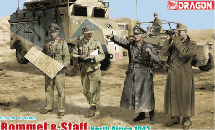 ■フィギュア4体セット■ロンメル将軍とそのスタッフが前線で作戦会議を行う姿を再現 ■ロンメルは革製のロングコートを羽織り、左手には双眼鏡、右手は前方を指し示す ポーズでモデル化 ■帽子にはお馴染みのゴーグルをモデルでもしっかりと再現 ■ロングコートは裾や襟の部分を別パーツ化するなど、立体感ある仕上がり ■服の自然な皺の表現や双眼鏡などの小物もシャープな仕上がり ■一人が手にする地図は1/35 スケールで印刷されたペーパーがセット |