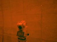 基本的な断面測量の場合、水平面に直交する垂直平面(鉛直面)を基準としますが 内空断面測量の場合、水平面に対して任意の角度をもつ(鉛直面を含む)平面を基準として測量します。 トンネル内の進行方向に対する垂直面を基準とする場合は 既存構造物の目地などを利用し、可視光レーザーを用いて測量します。 特に、傾斜角の大きいトンネルに効果を発揮します。 又、自然の洞窟などの複雑な内空断面を測量する場合は 基準となる平面の指示が困難なため、あらかじめ立体的(3次元)に予備測量をすることで 任意平面の断面図を生成し、現地にて任意の個所を指示いたします。 |