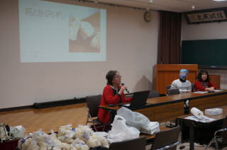準備完了後、講師の旭日公民館・川田亜希子さんよりかぶら寿し作りについて講義をして