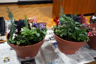 今年最後の行事である花と緑の出前講座で寄せ植えを行いました。