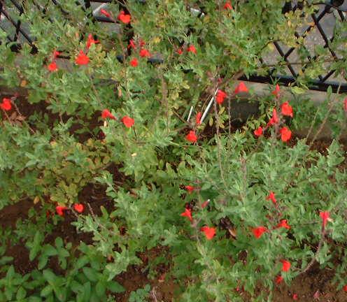 このピンク色の花のおっきいやつなあに↑ それは、チェリーセージというらしい・・・・・ かれんな甘いにおいがする。 ちなみにその他のものは今年になり、ハーブガーデンに目覚めてしまった管理人が植えたもので 手前のものは青じそ、その右横はペパーミント。