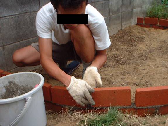 引き剥がしてから、煉瓦をおいてみる!まじめな方は