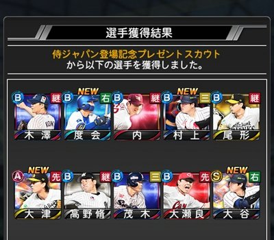 と言うわけで、新・侍JAPAN 無料チケットは、 大谷翔平(打者)、 鈴木誠也、 [ヤクルトの]中村悠平捕手 という結果になりました。 どこをどう見ても、大当たりですけど、 大谷さんは、極にして、 鈴木さんには、保管庫に行ってもらう。 中村捕手は、今のところは保留です。 自分は、リアタイよりもリーグ戦がメインなので、 スピリット5100の選手を育てるのは、 労力の割にはリターンは少なく感じるし。 先発投手なら5枠、中継ぎ投手も4枠あるから、 投手が来てくれた方が、まだ、長持ちしそうなんだけど、来なかったね。 (ベストナイン&タイトルホルダーも野手寄りだったからなぁー。) 投手なら、[日ハムの]伊藤投手とか[巨人の]大勢投手なら、極には出来るけど、 でも、彼らなら、そのうち、極みに出来るから、 やっぱり、今回の無料チケットでは、MLB組が来てくれた方が嬉しいだろうな。 でも、今回のMLB組の投手は、山本由伸以外は低評価だと思う。 菊池投手も菅野投手も(ゲーム的には)イマイチと言わざるを得ない。 MLB組の打者も、大谷は別格として、 残りの鈴木誠也と吉田正尚は弱体化している。 「ライドラの正尚とか誰が使うんだよ。」 と言うか、過去最強の侍ジャパンの割には、MLBの選手が少なすぎる。と思う。 逆に、ベネズエラのスタメン野手は、全員、MLBの選手だったというし。 (試合は見れてないけど)たぶん、ベネズエラの方が強かったと思うし、 10回試合したら、6〜7回はベネズエラが勝っていたと思うよ。 ベネズエラのみなさんと[オリックスの]マチャド投手へ。 「WBC、優勝、おめでとう!!」(^O^) <最後に。グランドオープンに向けて。(2026年3月23日)> 大谷翔平(打者)が入ってくれたから、リーグ戦的には、 半年間はDH、またはライトは埋まったと思います。 もう、ショートとレフトは1名ずつでも十分かな。と。 あとは、運の話になるけど、Sランクチケットで、 何人、先発投手を極に出来るかどうか・・・。 ですね。 こればかりは運ゲーだ。(奇跡よ、起こってくれ!!) 欲を張ると、先発投手を3名、極にしたいです。 |