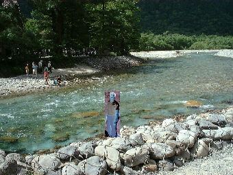 | 河童橋の下で記念撮影♪ |