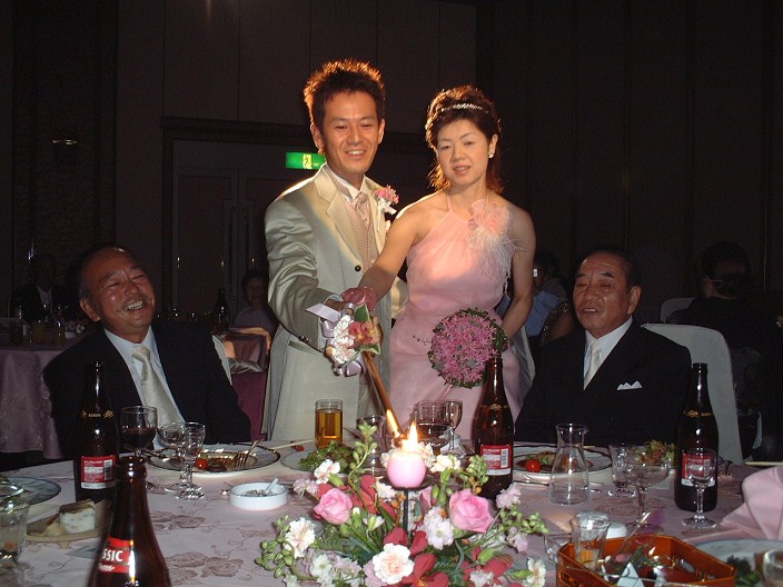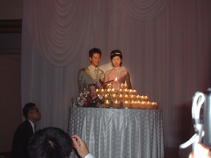 最後のテーブル(新郎友人の坊さん衆)の火を点けて振り向いたら消えたのは面白かった.