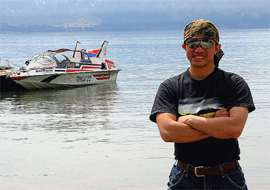 後ろにあるスピードボートの船体には「F-14 TOMCAT」のマーキングが(w
