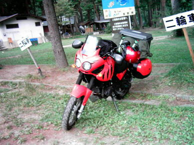 下る。途中、昨日のアフリカツインとすれ違ったが、相対速度が速かったのでピースサインもできな かった。